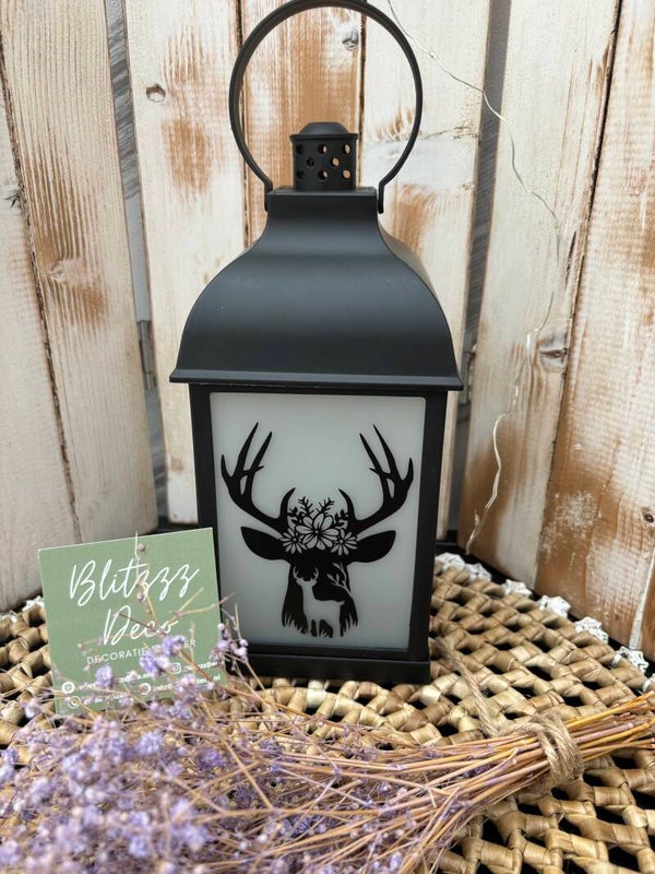 Leuke binnen lantaarn op batterijen (2xaa inclusief. Aan 2 zijden bedrukt.