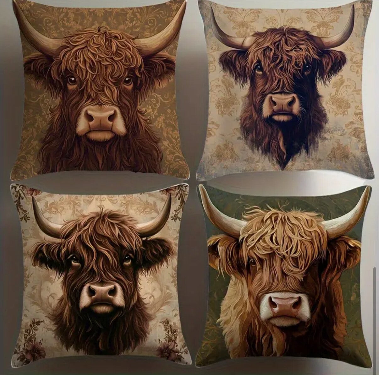Kussen hoes Schotse hooglander kleur set van 4 stuks