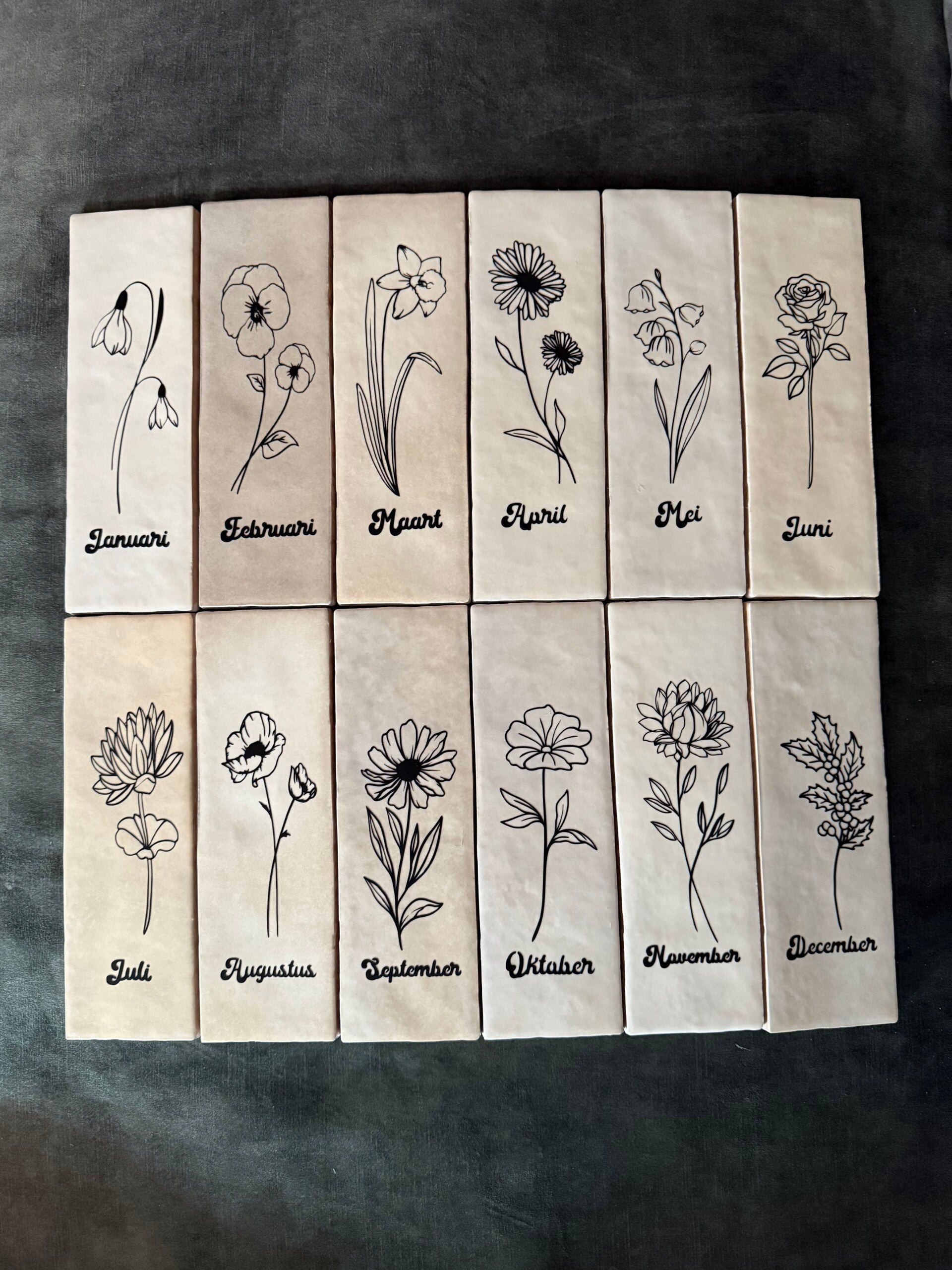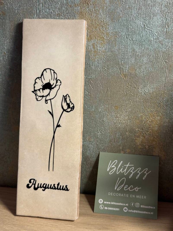 Elke tegel wordt bedrukt met de geboortebloem van de gekozen maand.