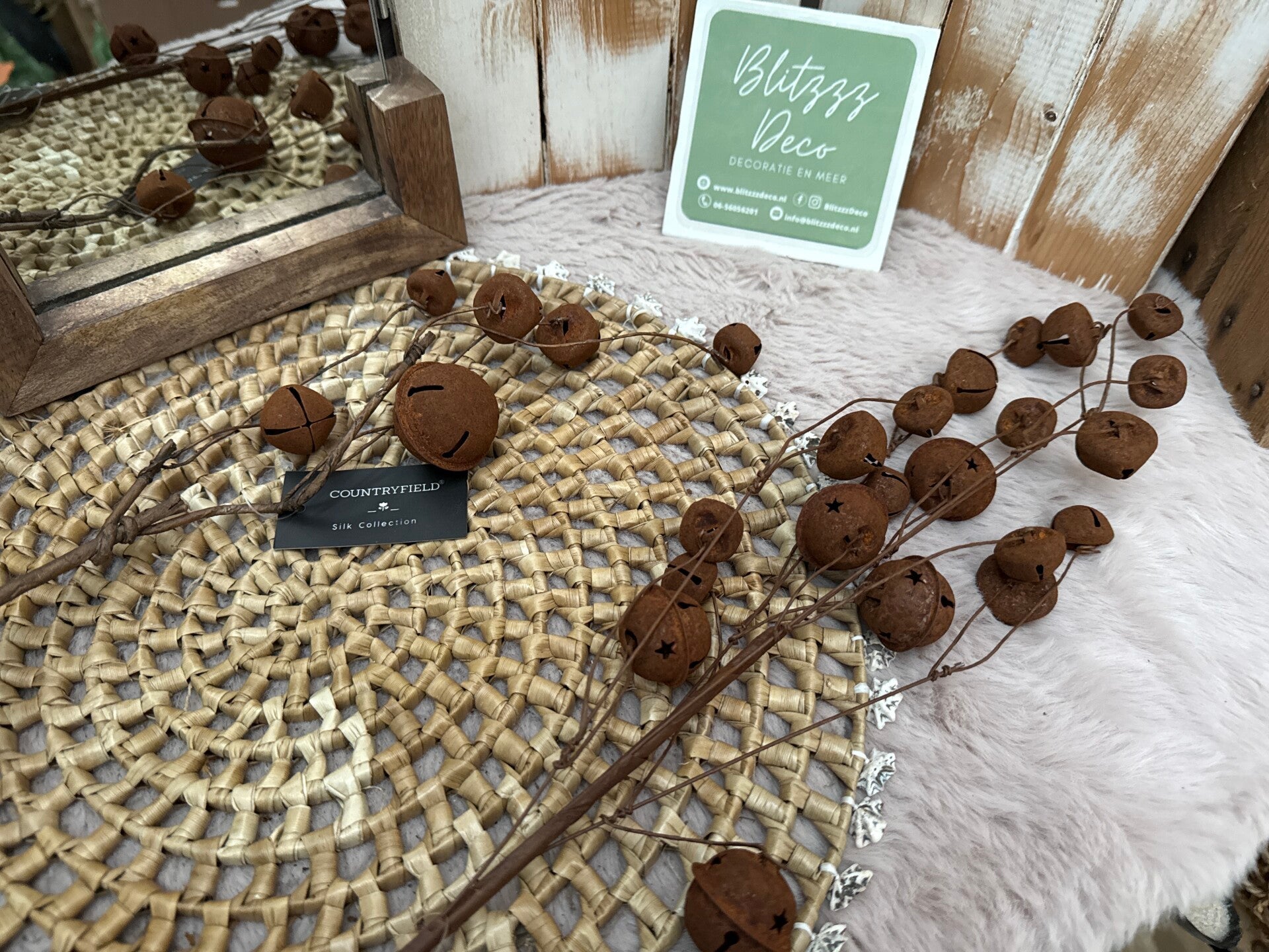 Roestige tak met belletjes. Verkrijgbaar in 2 afmetingen.