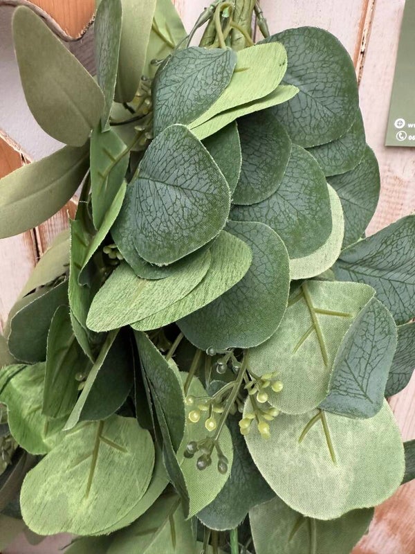 Mooie eucalyptus kunst toef. Heeft een lengte van ca70 cm. Ideaal als toef aan een luik, deur of muur. Perfect om mee te decoreren voor de winter en kerst.