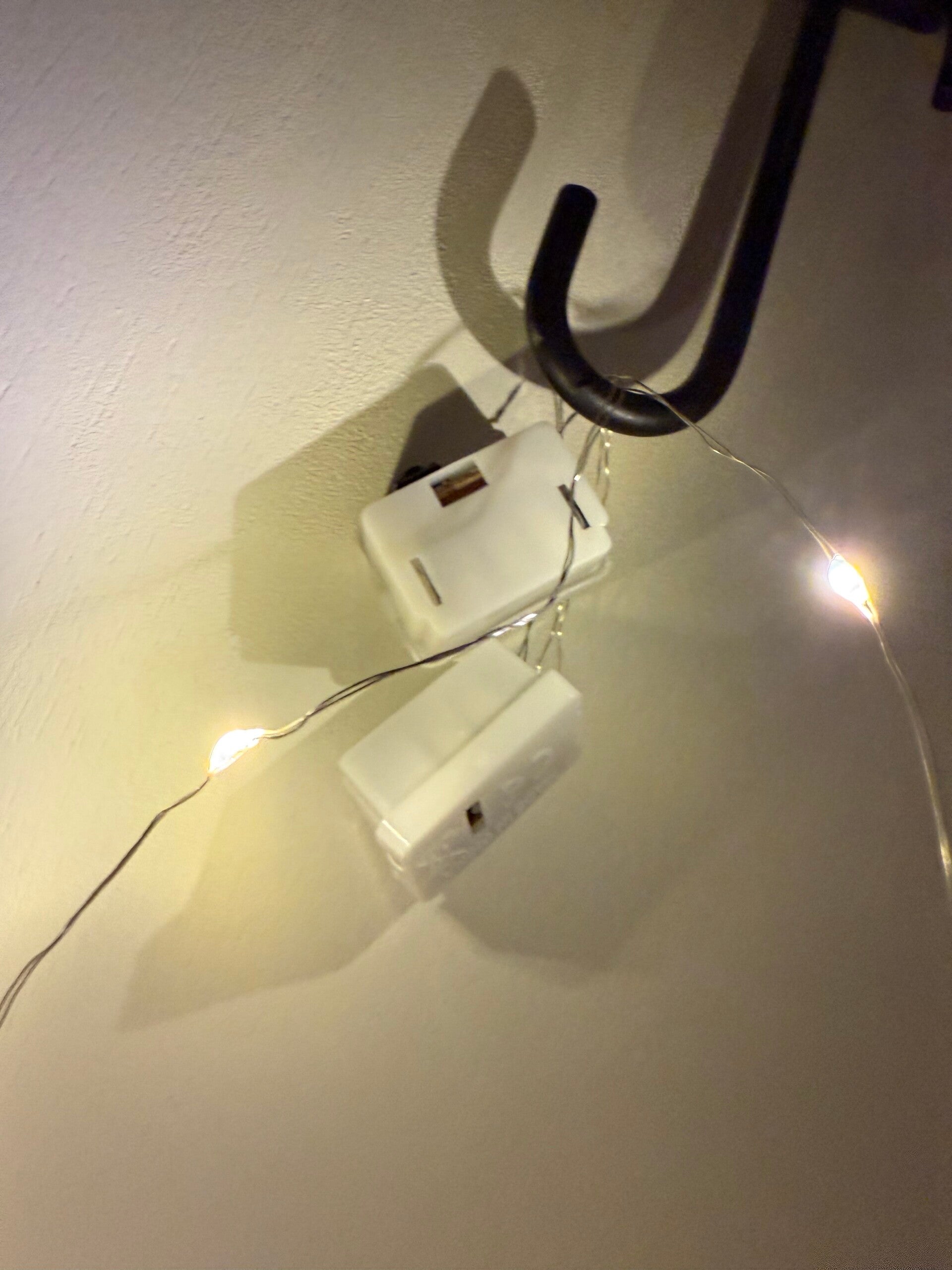 Een lichtsnoer met mini compartiment. Het compartiment ca 1x2 cm en werkt op horloge batterijen.