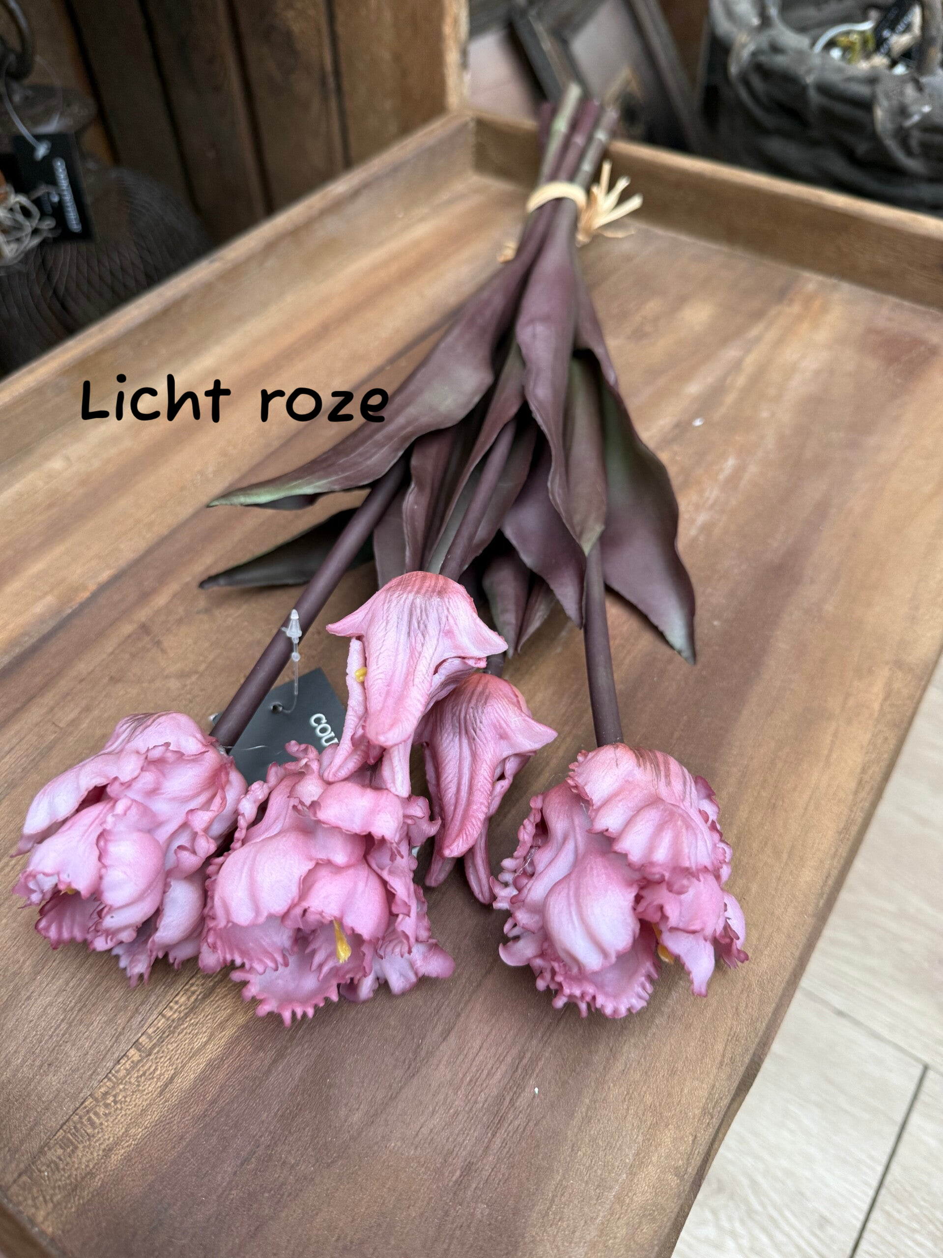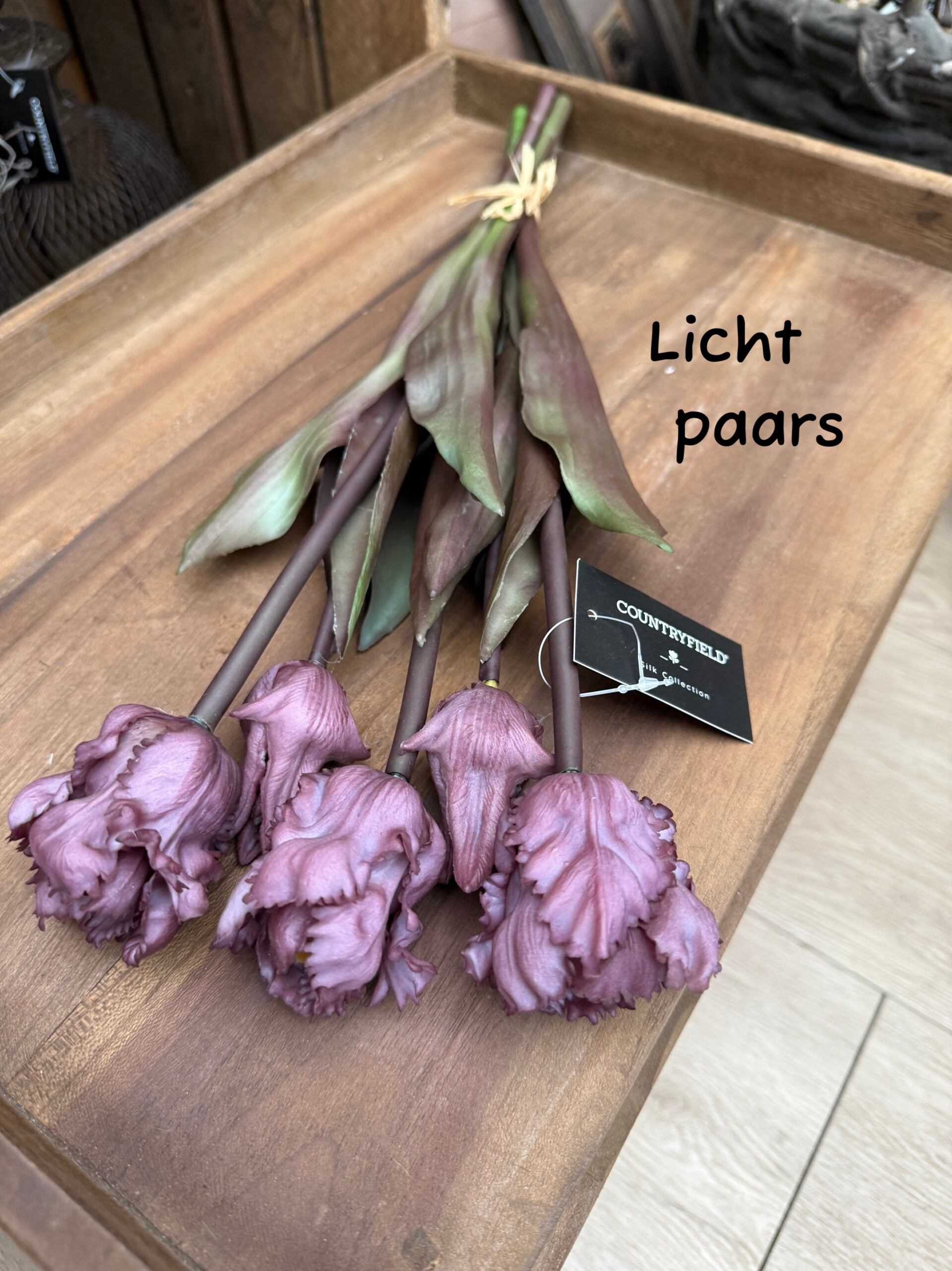 Prachtige real look en real touch tulpen 40 cm van Countryfield. Ieder bosje bevat 5 bloemen. Verkrijgbaar in verschillende kleuren. Exclusief accesoires.
